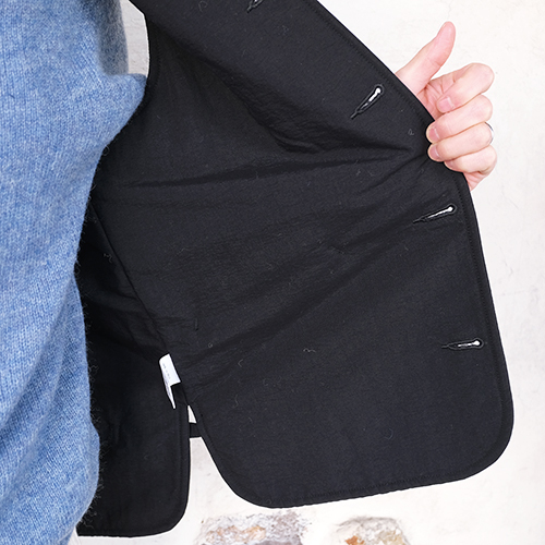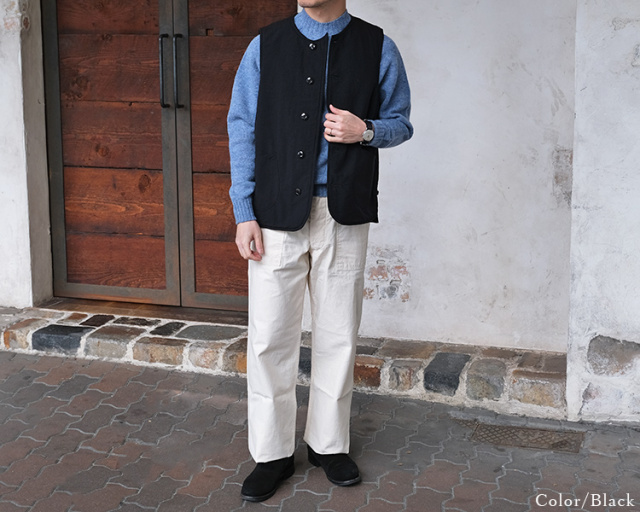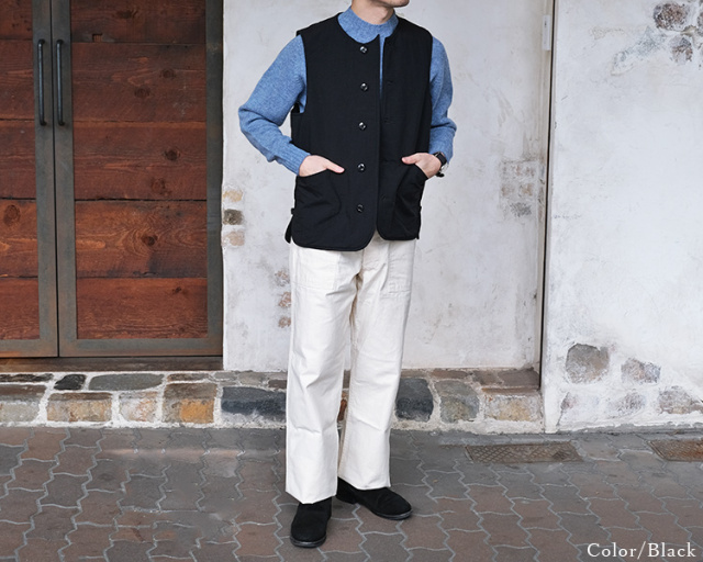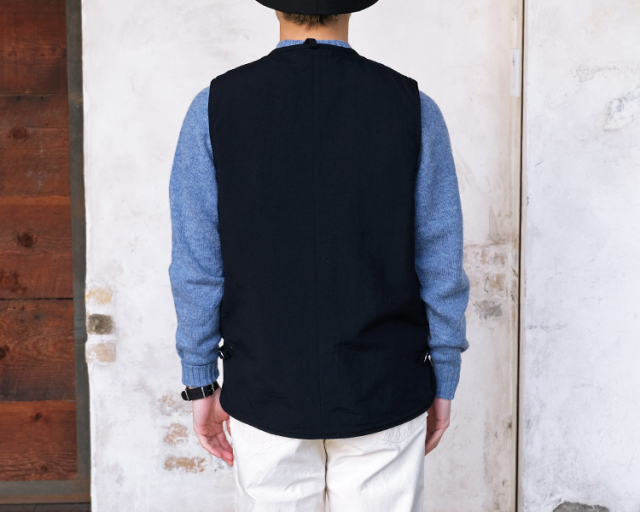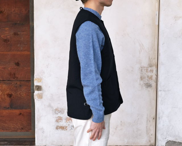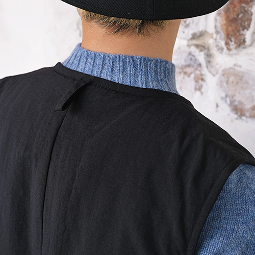 デザインソースはスウェーデン軍のライナーベストをベースにしており、フロントには大きなポケットを2箇所、サイドにはサイドアジャスターをつけることで、可変的なシルエット調整が可能で、性別関係なく着用できる仕上がりとなっています。