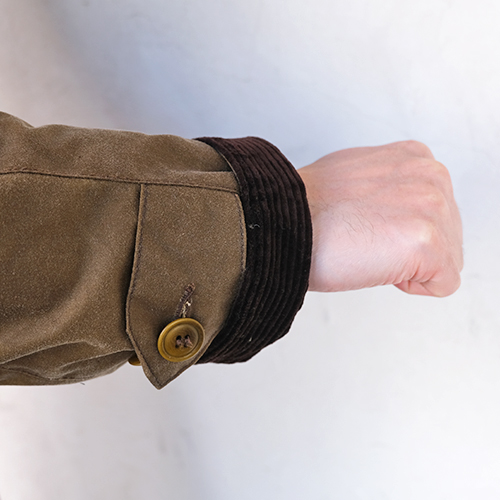 | 素材 | 表地:綿 100% 身頃裏:綿 100% 袖裏:ポリエステル 100% 衿部分:綿 100% 皮革部分:牛革 |