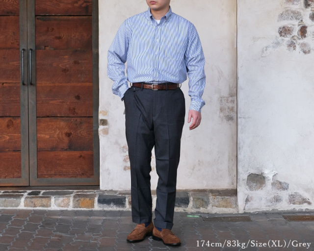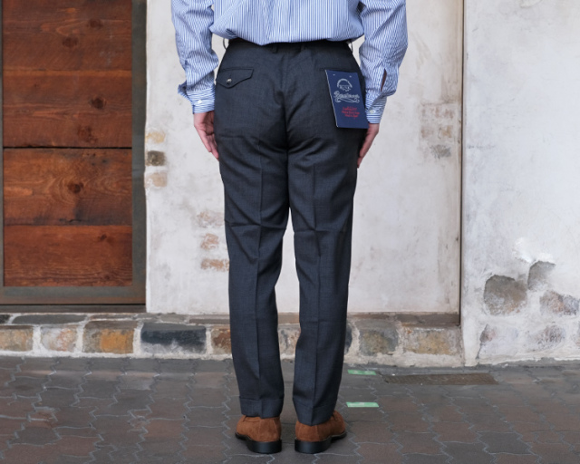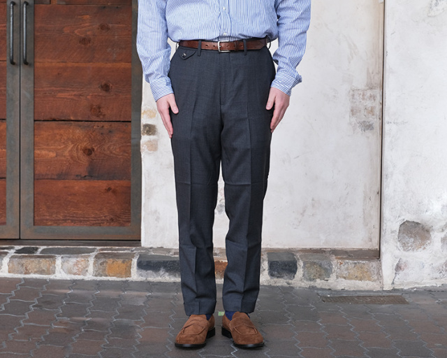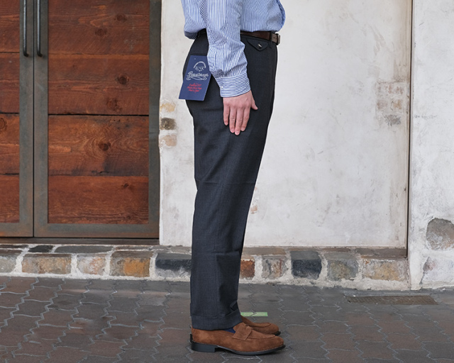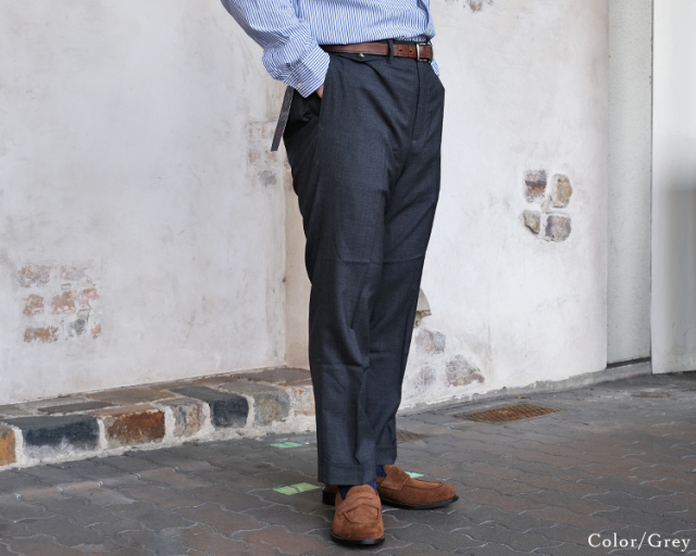 シルエットは、緩めのテーパードにセンタークリースで大人なスラックスとして綺麗に履いていただけます。