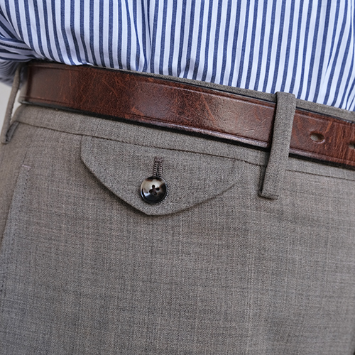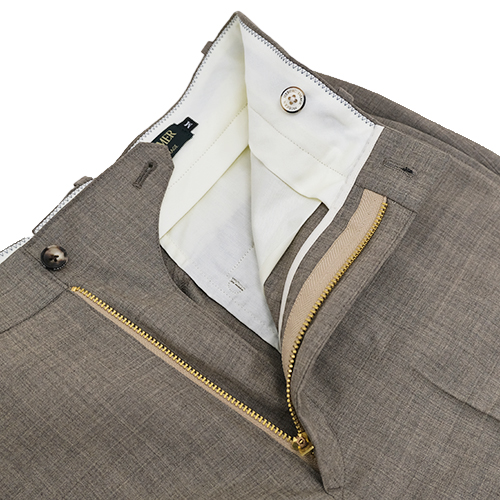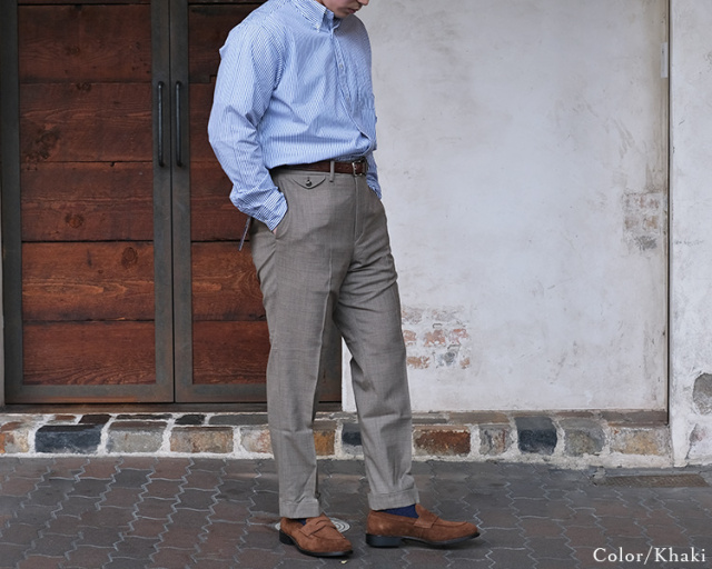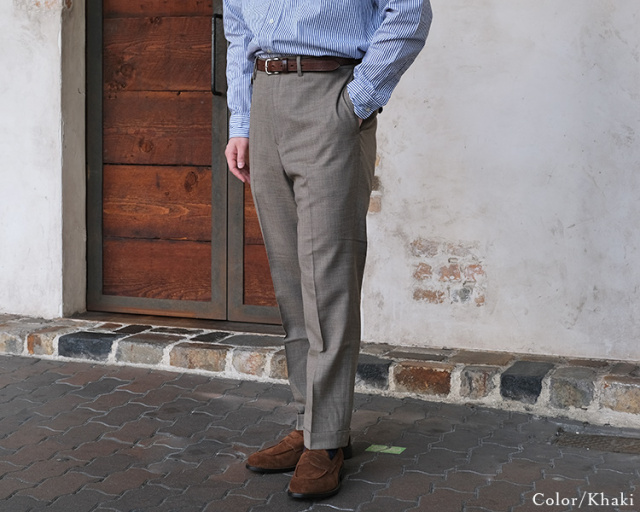 カーキは実はウールスラックスでは見かけない色目。