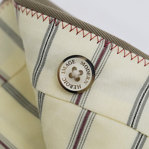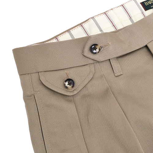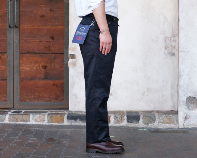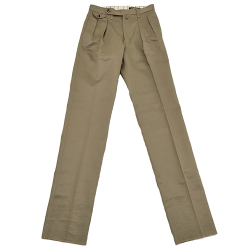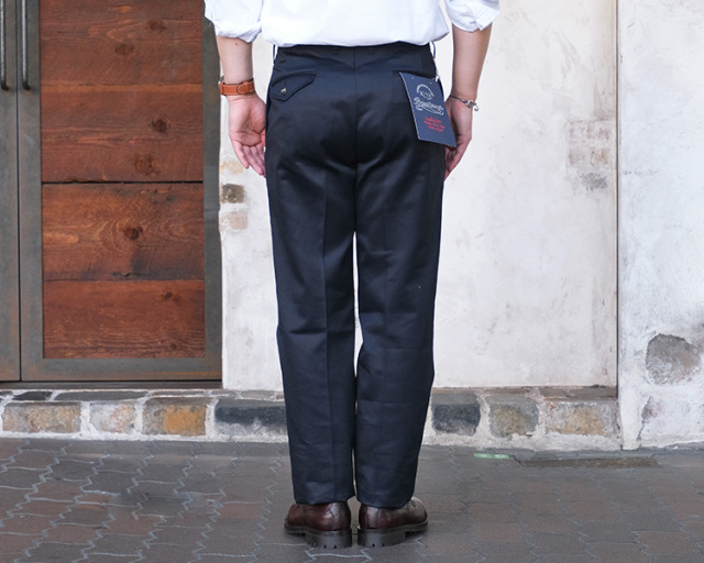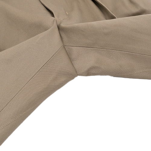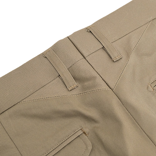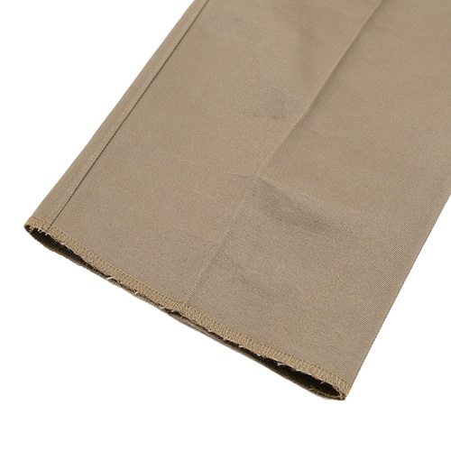 裾はフラシ(未処理)の状態ですので、お直しが必須となりますが、チノパンらしくタタキ仕上げはもちろん、4cm ~ 4.5cm 幅の比較的広めのダブル仕上げもおすすめです。