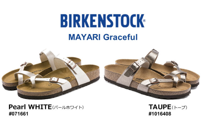 | Birkenstockの定番、親指を固定したトングモデル「MAYARI/マヤリ」。 親指を固定したスタイルは、一般的なトングタイプより脱げにくい構造になっているので安定感に優れます。 |