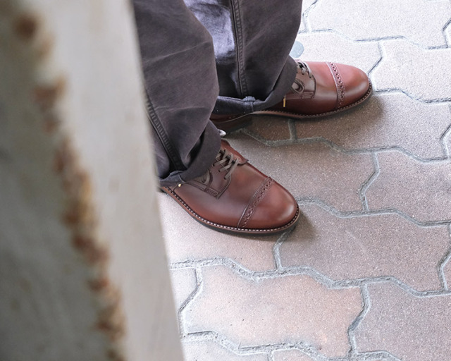 デザインには無いパンチングキャップトゥのデザインを加えています。