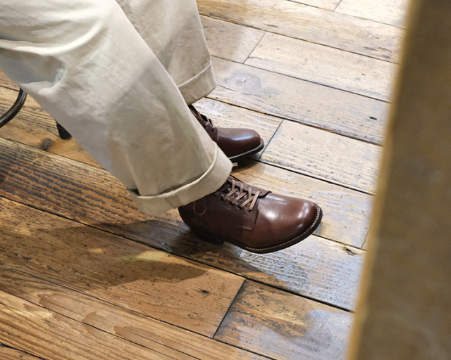 “ミリタリーブーツ”らしさを残しつつ上品な大人顔に仕上げる技術は流石ブラザーブリッジ。