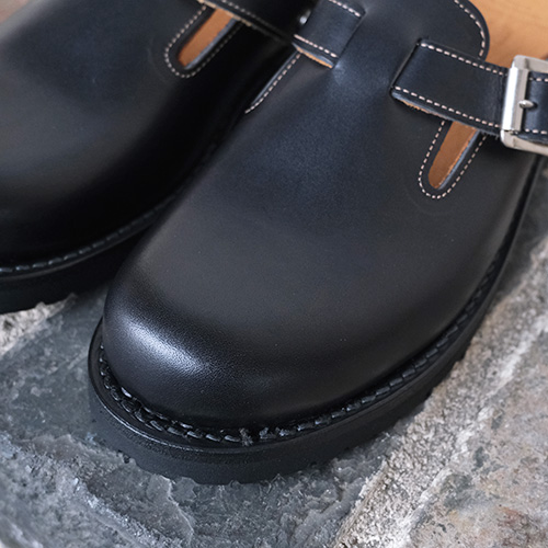 ビンテージのマンソン木型をベースにしています。この木型は爪先が足の形に違いオブリーク調になっております。この木型はアメリカやドイツなどで良く使われていた木型ですをサボシューズ呼ばれるものは比較的簡易的な製法で作られる事がありますが、ゴッホはBROTHERBRIDGEらしくグッドイヤー製法で長く履ける一足になっています。