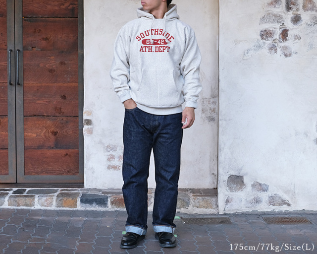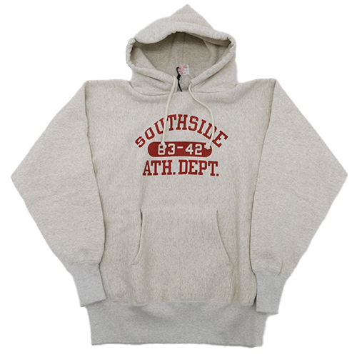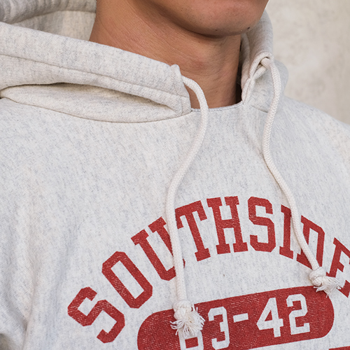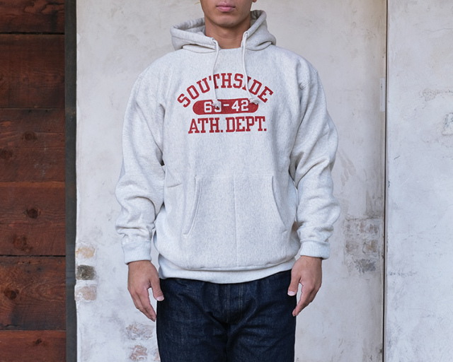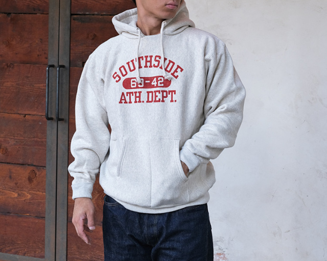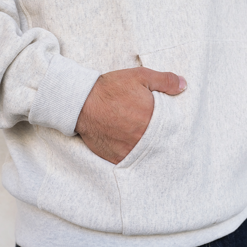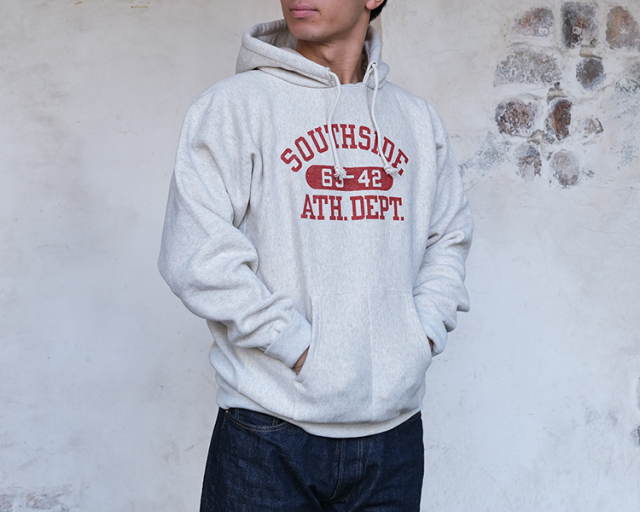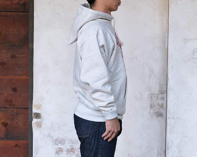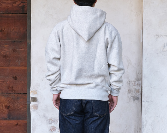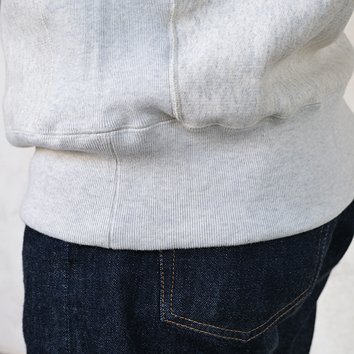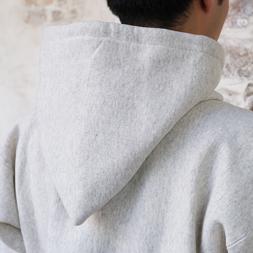 1952年に2度目の製法特許を取得した「REVERSE WEAVE(リバースウィーブ)」の復刻商品で、首周りのリブ部分にフードを挟み込んだ、通称「後付けパーカ」と言われるプルオーバーアフターフーデッドスウェットシャツです。