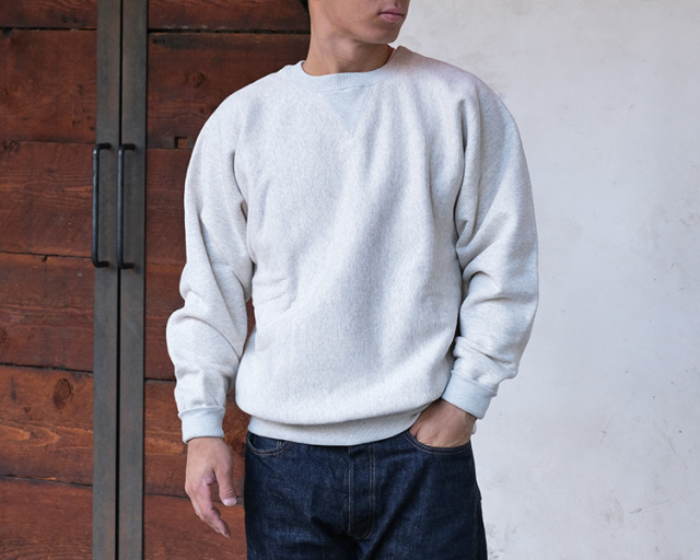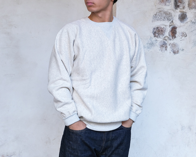 1934年に開発、1938年に製法特許を取得した最初期のリバースウィーブを復刻した、1stパテントモデル クルーネックスウェットシャツです。