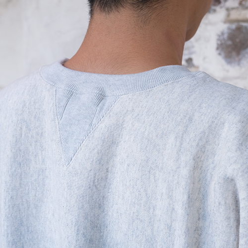 この復刻商品では、肩に縫い目のない一枚布で作ったシームレスショルダーや、筒状のスウェットからパターンを起こす当時の製法を忠実に再現。
