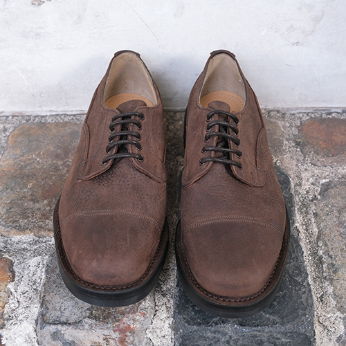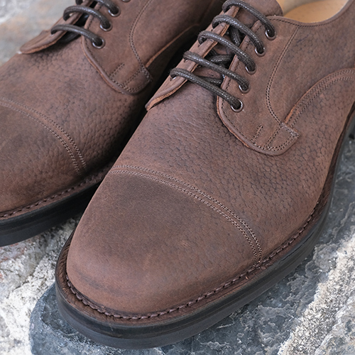 ポルトガルのタンナーの革を使用し、ヌバックレザーに型押しがされているのが特徴的です。