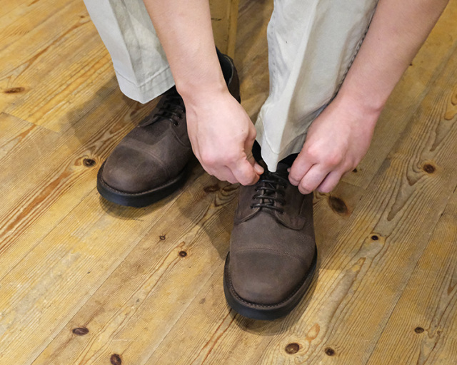 | 素材 | 牛革 (ヌバックグレインレザー) ラバーソール (荒れた路面に強いダイナイト社製のソール) |
