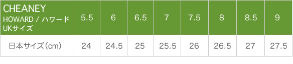 | 取り扱いサイズ | UK5H(約24cm)~UK9(約27.5cm) *カッコ内はおすすめサイズとなります。 *適応サイズには足幅や甲の高さなど個人差があるため、おすすめサイズはあくまでも目安になります。 |