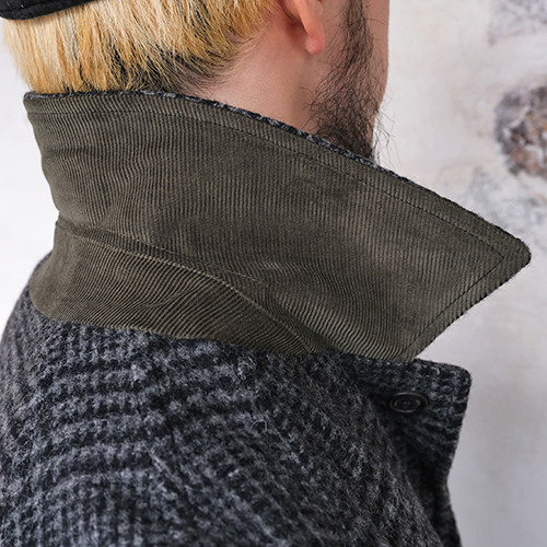 襟裏にはコーデュロイを配しブリティッシュな背景にアメリカ的なラギッドさを。