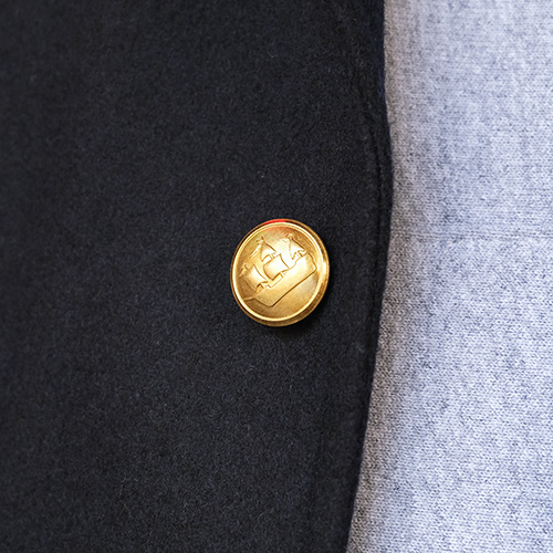 アンティークゴールドボタンはD.C.WHITEオリジナル。帆船が刻印されています。