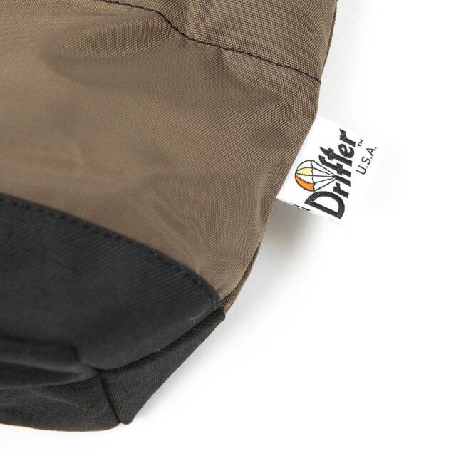 設立当初はパラシュートを作る会社だったDrifter。「Drift = 偏流飛行」の意味に由来して、Drifterというブランド名に。 その名残で今でもブランドロゴにはパラシュートがデザインされています。命の全てをパラシュート一枚にゆだね、大空をゆらゆらと旋回降下してくる優雅な様子はまさに究極。人とライフスタイルの重要な絆になれるようなブランドでありたいという思いが込められています。 |