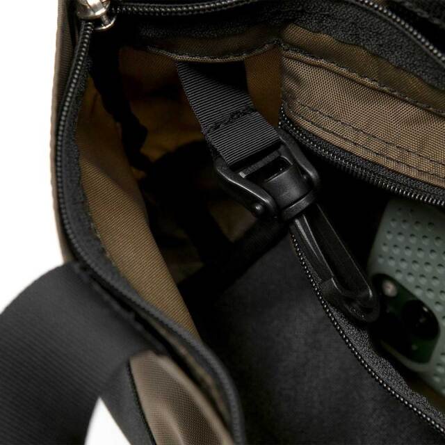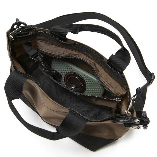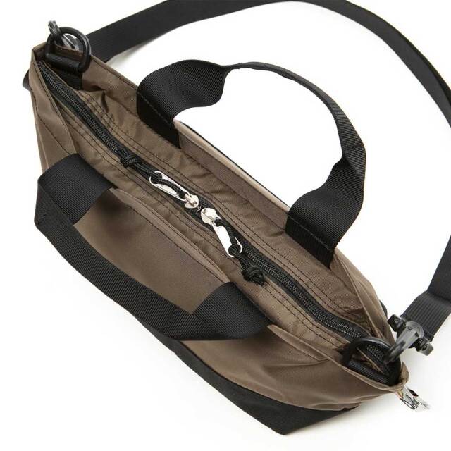 ファスナー開閉式でセキュリティ面にも配慮されており、横長のシルエットが印象的。