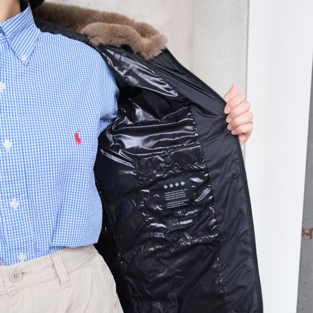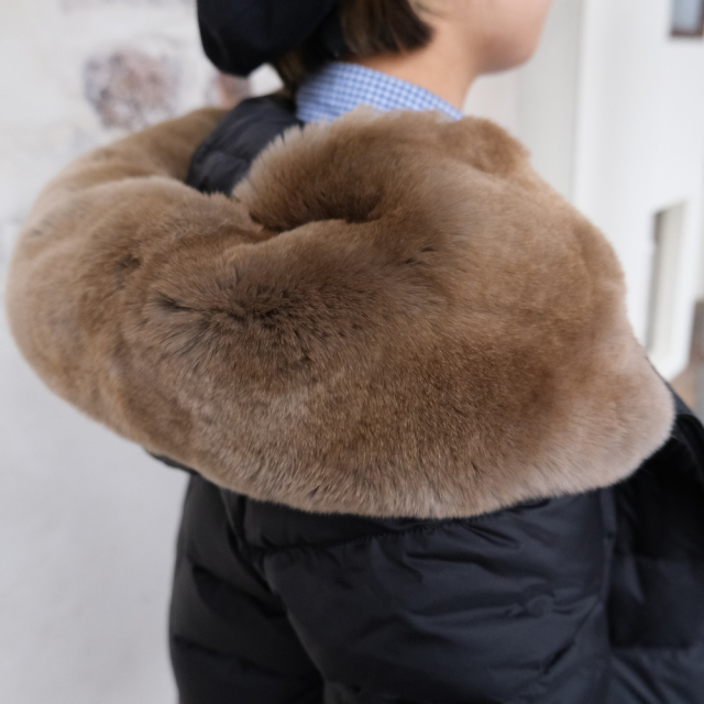 | 素材 | 表地:ナイロン100% 裏地:ナイロン100% 詰物:ダウン90%,フェザー10% 毛皮:レッキスラビット |