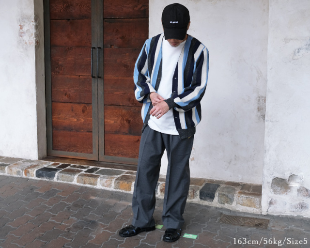 | 取り扱いサイズ | 5(S),6(M),7(L) *一個一個手作業にて生産・加工しておりますため、個体差がございます。 *体型や好みの着用感は個人差がございますのでご了承下さいませ。 *163cm 56kgのスタッフがサイズ5(S)を着用。 |