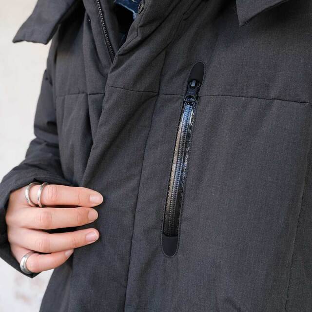 | 素材 | 表地:ポリエステル93% アラミド7% 中わた:ダウン90% フェザー10% 裏地:ポリエステル100% |