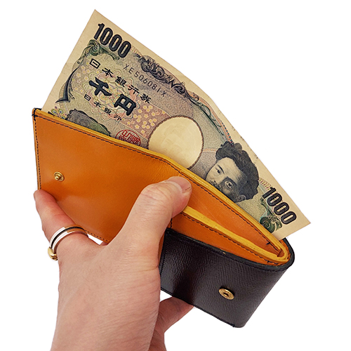 サイズ感も程良くシンプルな見た目ですが、カードやお札も入る収納力の高さが特徴的。