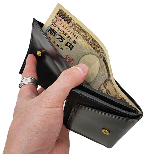 サイズ感も程良くシンプルな見た目ですが、カードやお札も入る収納力の高さが特徴的。