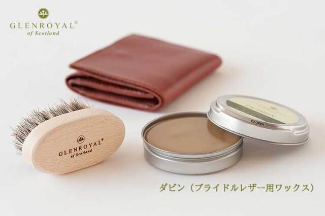 *ブライドル(ワックス)仕上げ以外の皮革へのご使用はお避け下さい。 *スエード等の起毛革、爬虫類レザーには使用できません。 *幼児の手の届かない涼しいところに保管して下さい。 *ワックスが溶けたり分離する事がございますが、品質には問題ありません。 *掲載画像についてですが、できるだけ商品のお色目通りになるように撮影・掲載いたしておりますが、ご覧になられる環境(モニタ)などによって、若干色見等が異なる場合がございます。ご心配な方は、ご遠慮なくお気軽にお問い合わせください。 ブライドルレザー製品専用の保革、保護、ツヤ出しのための専用ワックス。 使ううちに自然とエイジングするブライドルレザーですが、愛着を持って永くお使いいただくためには、定期的なお手入れが必要です。 目安は1ヵ月に1回程度。革の折り部分、負荷がかかりやすい部分、コーナーなどは特に念に入りに。これにより、色&艶が美しく深まるのみならず、しなやかになり、かつ耐久性が高まります。また「表面が少し乾いてきたかな?」と感じたとき、あるいは雨にさらされた後にも専用ワックスでオイル分を補いましょう。 |