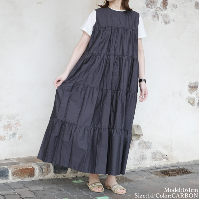 きめ細やかなブロードが魅力的なティアードワンピース。
