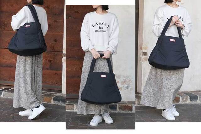 バッグは柔らかい手触りでパッド入りの大きなハンドルが付いており