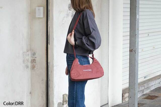 上品な光沢と防水性を備えた、HUNTERの軽量ショルダーバッグ。