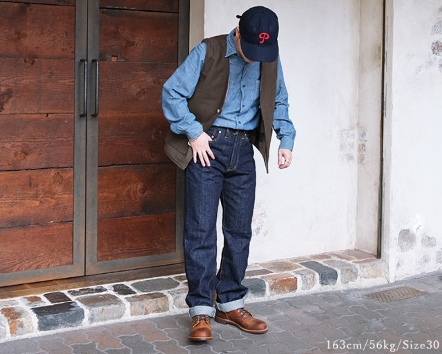| 取り扱いサイズ | 28・29・30・31・32・33・34・36・38・40 ※ワンウォッシュ済になります。 ※163cm 56kg スタッフ サイズ30を着用。 |