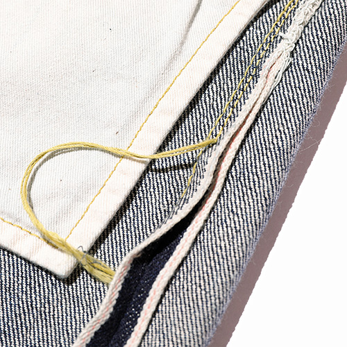 インシームは三行程で縫い付けることでしっかりとしたアタリが出ます。