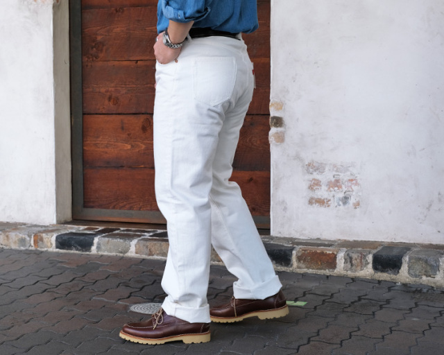 ナチュラルストレッチが効いた14オンスのXXデニムらしいホワイトデニムが完成。