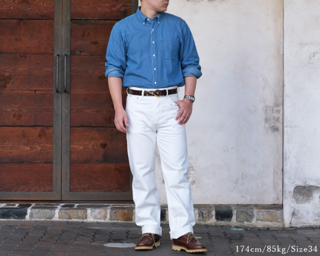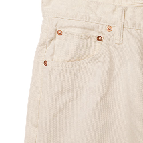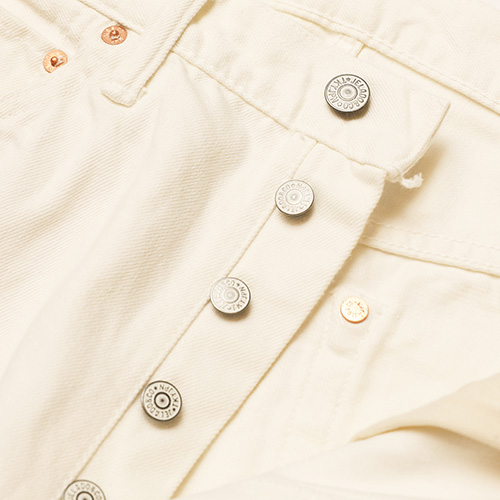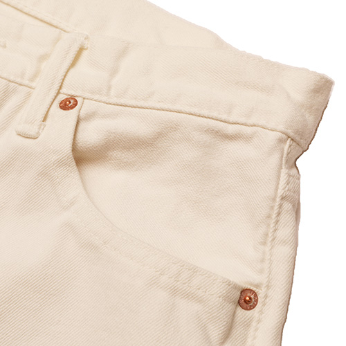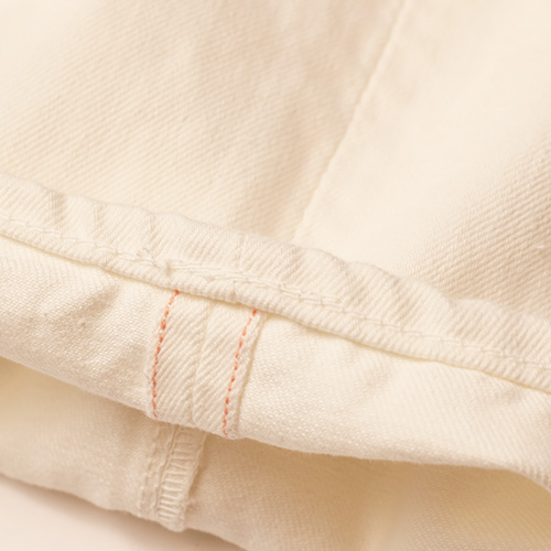 これにより、長年の着用を楽しむ事の出来るホワイトデニムとなります。
