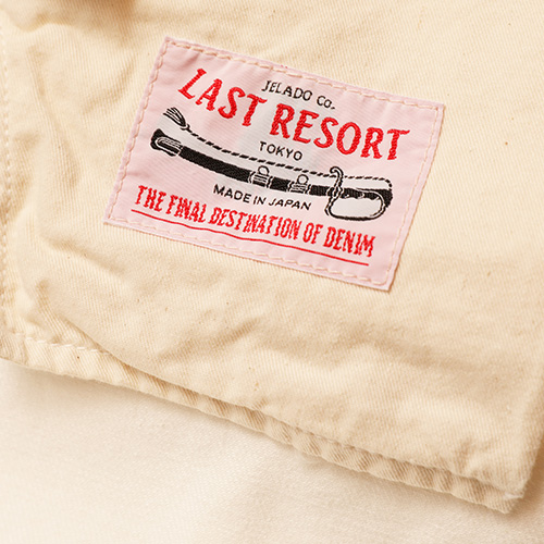 付属にはオリジナルの鉄ボタンを採用し、ポケット布にはLAST RESORTのネームが取り付けられています。