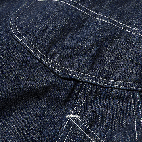 ライトオンスのデニムを使用し、大戦期のオーバーオールを再現しました。
