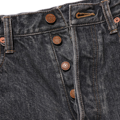 このブラックデニムは、インディゴと同様に着用することで経年変化が楽しめ、素晴らしいタテ落ちの雰囲気が得られます。