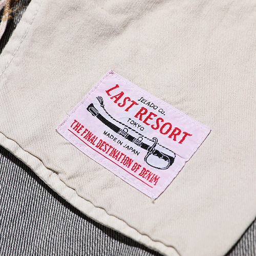フロントポケット布にはLAST RESORTの白タグが付けられ、やわらかく最高品質の生地感を楽しんでいただけます。