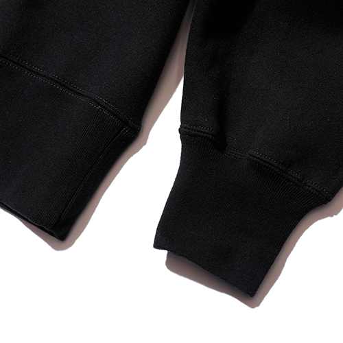 袖口には丸編みリブを採用し、脇下から口まで一続きの縫製を実現しました。