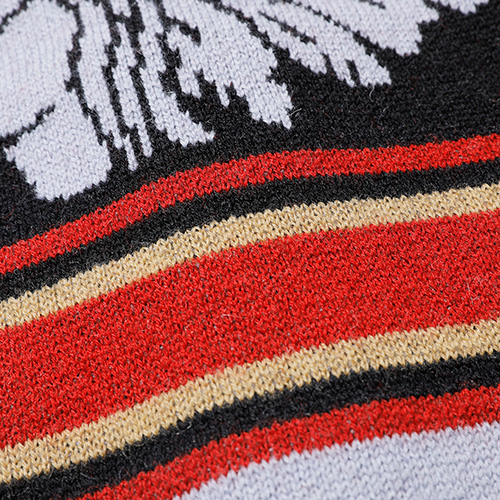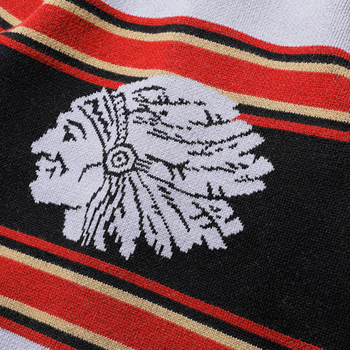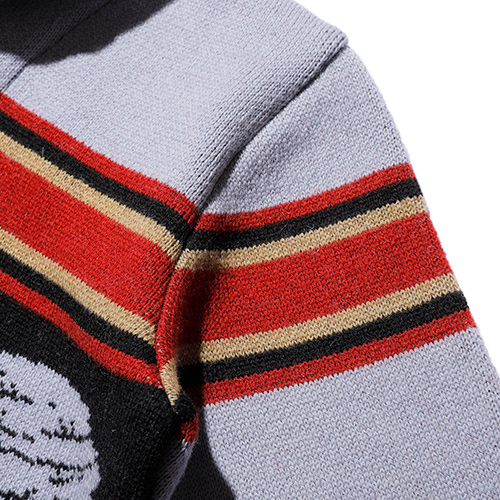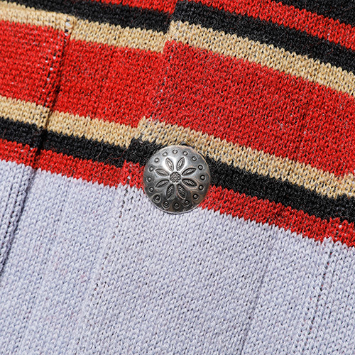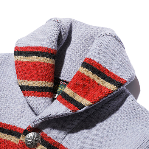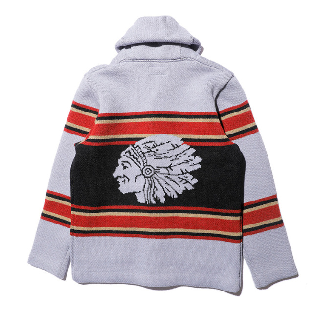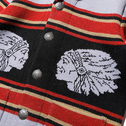 インディアンヘッドが描かれたブランケットの配色を基調にしながらも、カーディガンとしてのバランスを考慮。