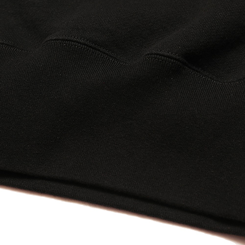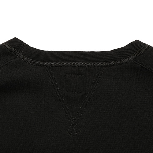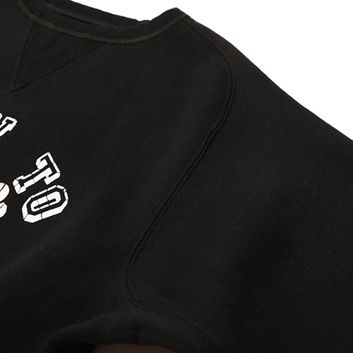 縫製はほぼ二本針で行われており、袖口は丸編みリブを採用。袖口リブは脇下の二本針縫製から一度でリブを付けており、ヴィンテージの縫製方法を忠実に再現しています。