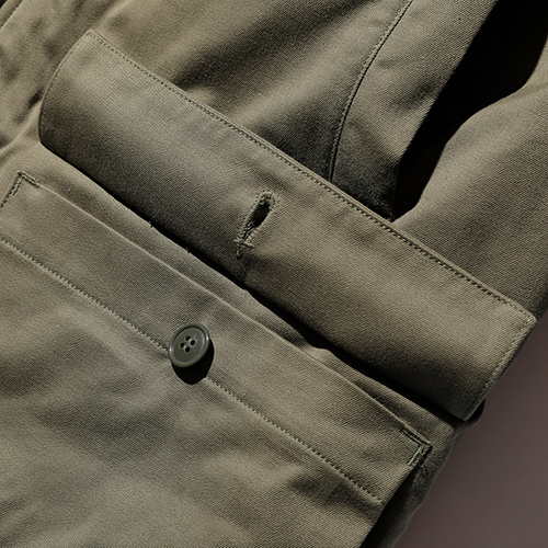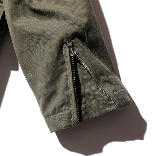 ライダースのような袖口ファスナーやリブ付きポケットなど、同時代のミリタリーウェアの中でも突出したデザインが特徴です。