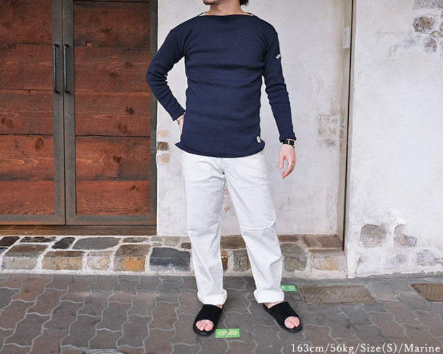 サイズSでジャストです。 ニット地特有の着心地の良さが良いですね。 気兼ねなくガシガシ使えるバスクシャツ、2021SSから取扱いを始めさせて頂いた当店オススメブランドです! |