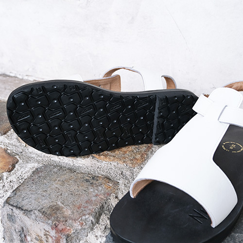 指をフリーにし、靴下でも素足でも履けるように考えました。
