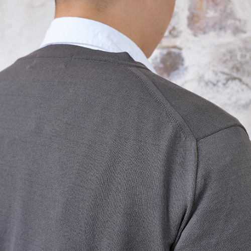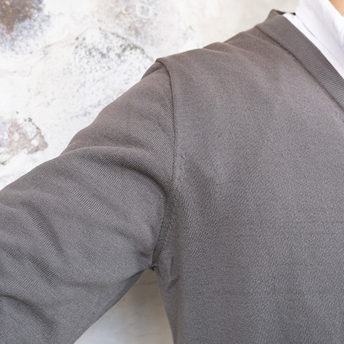 首元に適度な余裕のある開き具合で、より洗練された印象を与えるVネック仕様です。 |