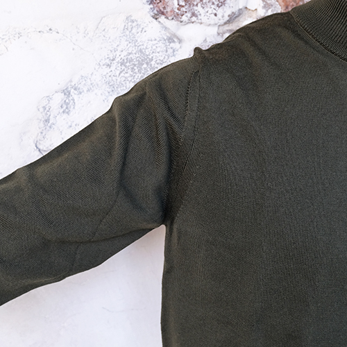 細かく均一な編み目のハイゲージニットはなめらかで、一目見るだけで上質感が伝わる仕上がりです。