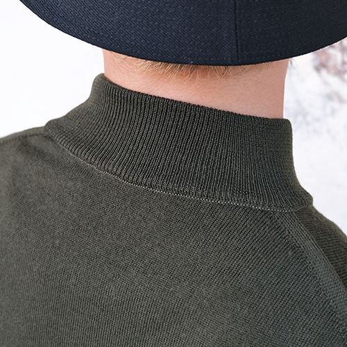 低すぎず高すぎずの絶妙なバランスのモックネックに設計。 |