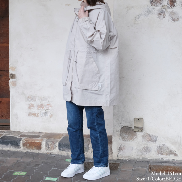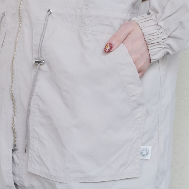 | フードとウエストにはドローコードが施され | ほんのり膨らみのあるマチ付きポケット。 |