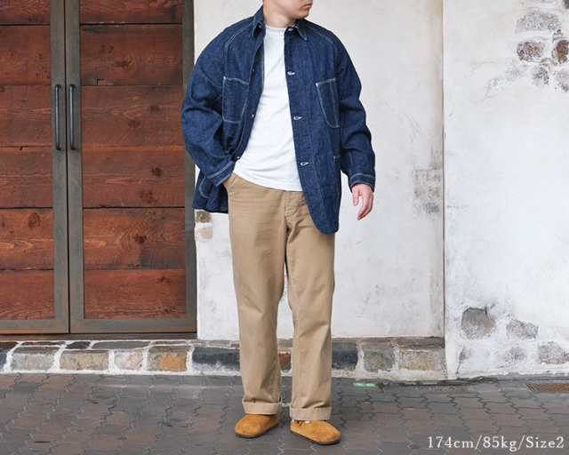 オアスロウから定番で発売しているカバーオールよりもシルエットはかなりのルーズフィット。