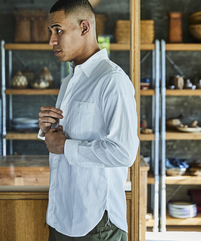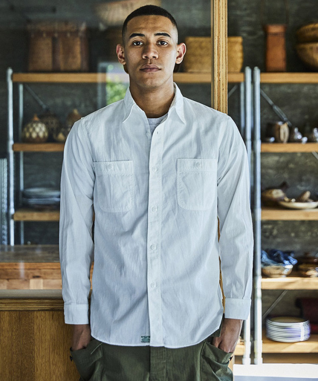 デザイン自体は、ワークシャツによく見られる定番的なディテールをしっかり盛り込みつつ、