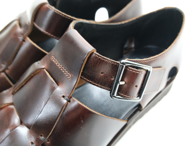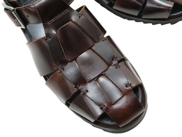甲部分が編み込まれた特徴的なデザインは、サンダルでありながら、革靴のようなしっかりとした作りです。 |