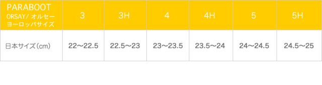| 取り扱いサイズ | レディースサイズ:3(22~22.5cm)~5H(24.5~25cm) |